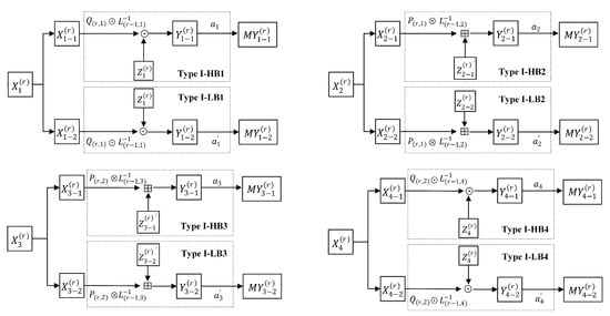 The transformations and are denoted as tables Type I-HB2 and Type I-LB2. The final result of the addition modulo (2) is , the result of computing .