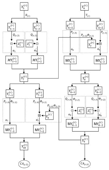 Using the same method, we use the Type II-V lookup tables to obtain , , , and . The corresponding two blocks perform XOR operations to obtain the inputs of the MA structure: