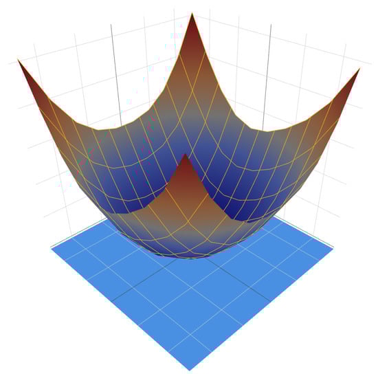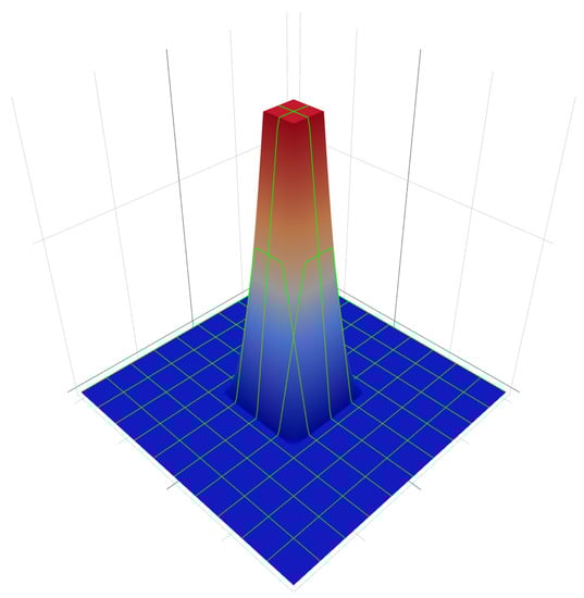 which are the well-known Bernstein operators [13] associated with any real-valued function , any , and any . The Bernstein polynomials (2) opened a new era in the approximation theory beginning with Sergei Natanovich Bernstein’s famous proof of the Weierstrass approximation theorem in 1912, and continuing until today with thousands of interesting papers. Some generalizations (approximation of integrable functions, approximation of measurable functions, Bernstein polynomials on an unbounded interval, degenerate Bernstein polynomials), as well as many other applications of the Bernstein polynomials, can be consulted in the excellent book [14]. An exceptional historical perspective is provided in [6] on the introduction and evolution of the Bernstein polynomials. Constructed as an important tool in approximation of functions by polynomials, they became in time more useful in exploiting computers to interactively design polynomial functions. In this context, the Bernstein polynomial basis provides valuable insight into its behavior over a certain finite interval, yielding many useful properties and elegant algorithms that are now being increasingly adopted in other application domains. In the real daily applications, different situations arise where it is necessary to solve certain definite integrals, much more complicated than those presented in the courses of mathematical analysis. In order to solve such integrals in an efficient way, numerous numerical methods called quadrature formulas have been developed. The most known method of numerical integration is obtained by integrating the Lagrange interpolation formula resulting in the class of Newton–Cotés quadrature formulas. Engineers and researchers use numerical integration as a primary tool to get approximate values for definite integrals that cannot be solved analytically. The quadrature formulas based on the linear positive Bernstein type operators represented a theme of intensive study for the distinguished mathematician Dimitrie D. Stancu. His contributions in this area were collected in the second volume of the monograph “Numerical Analysis and Approximation Theory” [15]. Looking deep at this problem of numerical integration based on the Bernstein polynomial, we remarked that it is not fully researched. In [10], we managed to assign a place on the map of the closed Newton–Cotés quadrature formulas to a new approximation formula based on the classical Bernstein polynomials. In order to increase the validity of the theoretical aspects, we tested a series of numerical examples. By approximation of definite integrals on some intervals , we observed that the resulting error is proportional with the interval length. Therefore, if the interval is large, then it is advisable to divide into smaller intervals and use the classical Bernstein quadrature formula on each subinterval. By adding the results, we get the approximation of the definite integral on the whole interval . Such a scheme is called the classical composite Bernstein quadrature formula, and it can be found in [11]. Although effective in most situations, there are instances when the composite quadrature formulas cannot be applied, as they use equally-spaced nodes. To avoid this fact, we constructed an adaptive method in [10]. All the mentioned results were established in the univariate case. In natural logic, we can continue our study in the bivariate case. Our aim is to compute the definite integral (on any finite bivariate interval as well as on any symmetrical finite bivariate interval ) of a function depending on two variables. For instance, let us consider the following two functions: