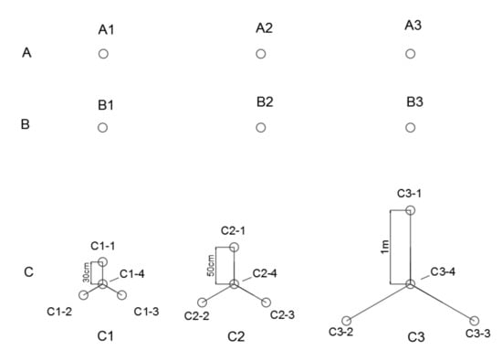 Group C: Double liquid slurry was injected, and 3 groups of glass fiber anchors were drilled: C1, C2, and C3. These had different densities. See Figure 10.