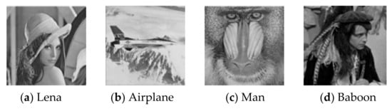 In this section, experiment results of the proposed RDHEI technique are discussed and compared with state-of-the-art techniques. To evaluate the performance of the proposed technique, we have taken four test images as shown in Figure 5. The test images are Lena, Airplane, Man, and Baboon, each one of size 512 × 512 with 8-bit depth gray values. The proposed technique has been evaluated using encryption performance and embedding rate. Encryption performance is estimated on two quality parameters, PSNR (peak signal-to-noise ratio) and SSIM (structural similarity), and one security parameter. Embedding rate (ER) basically represents embedding performance, which is measured in terms of bits per pixel (bpp).