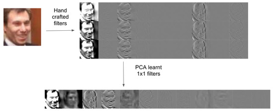 Various combinations of wavelet analysis and PCA have been proposed previously, but not the particular structure proposed here. The application of PCA to (decimated) wavelet transforms has been used frequently e.g., [26,27,28]. In those examples, PCA is applied to the whole wavelet transformed image (after suitable scaling of the subbands) or to each subband independently, so for the purposes of PCA each image or subband constitutes a ‘point’ in the high dimensional space to which PCA is applied. In this work, PCA is applied to ‘fibres’ in the partially decomposed space i.e., the values across channels at a particular 2D location. Performing PCA in this way produces a decomposition algorithm identical in structure to convolutional neural networks, where the mean subtraction becomes the bias and the 2D convolutional filters are a linear combination of the selected wavelet filters. Given the success of CNNs in solving a wide range of problems, we believe it is informative to consider different learning algorithms within the successful CNN structure.