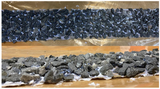 Before the start of the experiments, according to the developed methodology, shelves with particles fixed with glue were prepared for ore and waste rock (Figure 7).