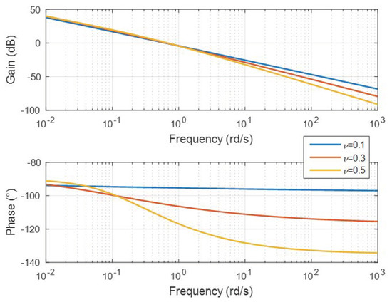 Figure 4 shows the frequency response of and demonstrates a power-law behavior because the phase is constant and equal to −ν90° for frequencies greater than .