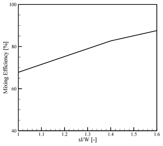 Mixing efficiency for different span lengths of curved arc plate.