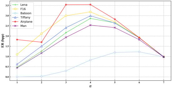 In conclusion,  has an important influence on the ER. To achieve the maximum ER, each image needs to choose the appropriate  according to its characteristics. Based on the above experimental results and analysis, the proposed method can achieve the maximum ER when  = 4.
