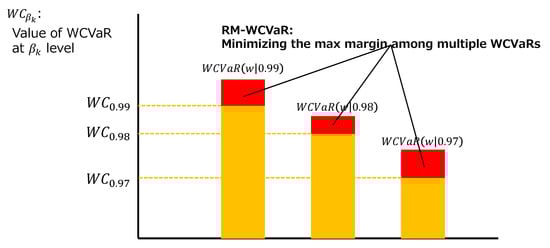 Here, is the value of WCVaR obtained by solving Problem 2. Then, we minimized C, considering that is a main problem in this paper.