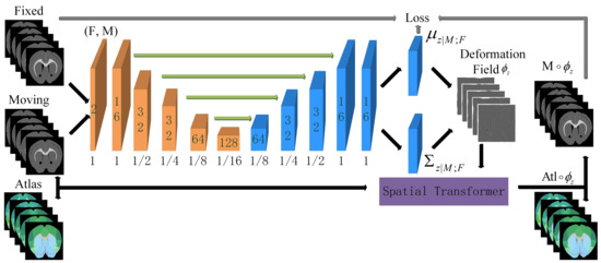 - Dalca, A.V.; Balakrishnan, G.; Guttag, J.; Sabuncu, M.R. Unsupervised learning for fast probabilistic diffeomorphic registration. In International Conference on Medical Image Computing and Computer-Assisted Intervention; Springer: Berlin/Heidelberg, Germany, 2018; pp. 729–738. [Google Scholar]
