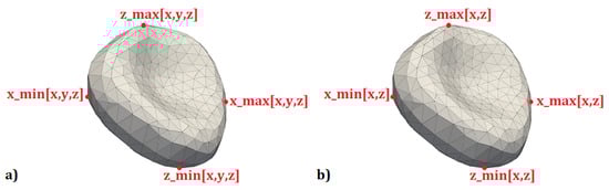The differences in the accuracy of the experiments depending on the choice of extremal points are minimal. The use of extremal points in the coordinate planes and was the most advantageous. This result is expected because the blood flows in the direction of the x-axis and therefore the elongation of the elastic blood cell is greatest in this direction.