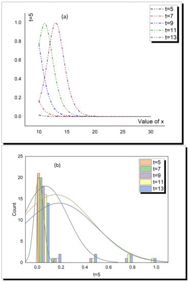 | Value of x | t = 5 | t = 7 | t = 9 | t = 11 | t = 13 |