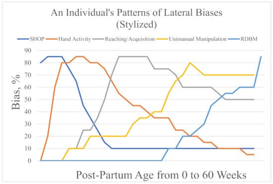 According to Atz [], using the construct of homology in behavior research requires: (i) robust descriptions of the organism’s behavioral repertoire; (ii) extensive comparative work on both the morphology of effector structures and the structure-function relation for the neural processes across a wide range of species; and (iii) detailed descriptions of developmental processes, especially in closely related species. All of these requirements are missing from the investigation of hemispheric specialization of function, including handedness []. There was no evidence to support the notion that the hand preferences (however defined) exhibited at different phases of development (prenatally, infancy, toddlerhood, preschool, preadolescent, adolescent, adult, etc.) represent different manifestations of the same underlying trait in the manner of serial homology. Therefore, human handedness is likely a convergent trait that evolved independently among different primate species and that emerges across developmental phases as ontogenetic adaptations to the ecological conditions specific to each different phase []. However, if handedness does represent ontogenetic adaptations, then any account of its development must address how it can exhibit the same preference (e.g., right hand) across different phases of ontogeny (see Section 9).