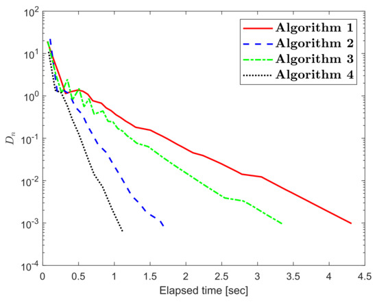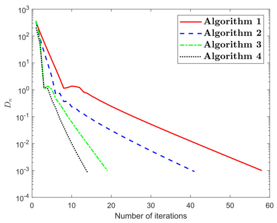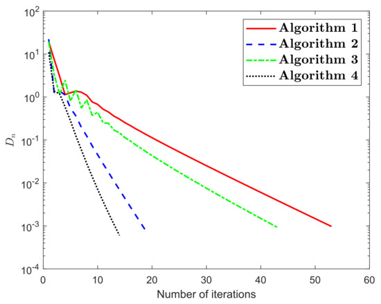 The numerical results for Example 1 are shown in Figure 1, Figure 2, Figure 3, Figure 4, Figure 5 and Figure 6 and Table 1Table 2. The control conditions are taken in the following way: