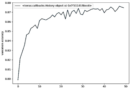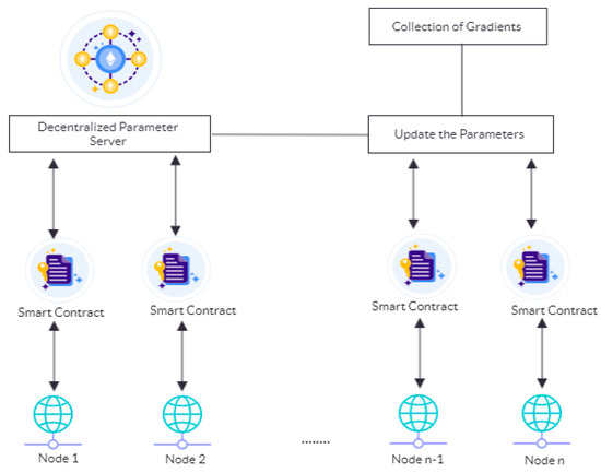 As shown in Figure 4, our DL model’s accuracy levels oscillate from 0.80 (80%) to approximately 0.88 (88%). Each node participating in the training process is identified by two keys: public key and associated private key. When the training process is concluded, a node that has just trained the DL model encrypts its computation results, which include the accuracy of the DL model by using the parameter server’s public. When the parameter server obtains the information, it uses its private key to retrieve the contents of the data from the node. To verify that a particular node enhances the DL model’s accuracy, the parameter server uses a federated averaging algorithm [31]. Under this framework, local nodes are allowed to conduct more than one batch of updates on their training data instead of the gradients. The idea behind the federated averaging algorithm is to ensure that weights emanating from the same node do not alter the model’s accuracy. Algorithm 4 specifies the federated averaging algorithm concept.