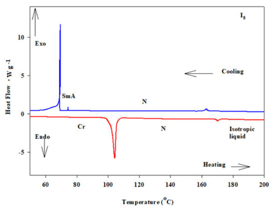 On the other hand, the polar attached groups, aspect ratio, polarizability, and geometrical structure of the LC molecule are considered as important parameters for the influence of the formed mesophase thermal stability.
