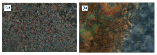 - Hung, Y.-H.; Liu, C.-Y.; Chen, W.-C.; Liu, J.-H. Thermal and optical properties of amphitropic liquid crystals derived from cholesterol and cinnamic acid. Liq. Cryst. 2020, 1–13. [Google Scholar] [CrossRef]