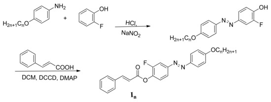 Synthesis of 2-fluoro-4-(4-(alkoxy)phenyl)diazenyl)phenyl cinnamate In.