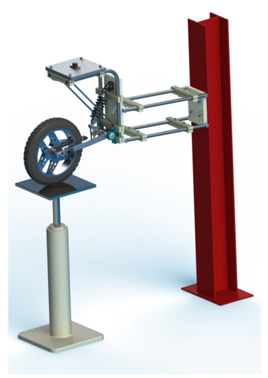 An example of an ADT set-up consisting of the rear suspension system of a motorcycle. The hydraulic actuator simulates the loads that the motorcycle would typically experience in the real world. A range of sensors such as accelerometers and strain gauges are used to capture the suspension system’s dynamic response.
