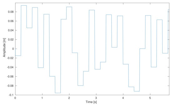 Since we are working with nonlinear structural systems, we know that the system responses are functions of input frequencies and the amplitude at which we excite the system. Therefore a signal that covers the necessary frequencies and the expected amplitude range of operations is required. The APRBS attempts to cover the amplitude operating conditions with a series of step responses that are fairly well distributed over the input range. An example of an APRBS is shown in Figure 4.