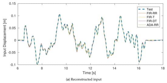 The reconstructed inputs and outputs for the linear and nonlinear systems are shown in Figure 8 and, Figure 9 respectively. The response reconstruction results for the linear and nonlinear systems are shown in Table 5. We treat FIR-RR as the bare minimum regression method since it does not impose a prior choice on the shape or smoothness of the parameters.
