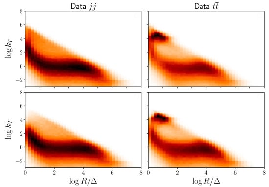 - Dillon, B.M.; Faroughy, D.A.; Kamenik, J.F. Uncovering latent jet substructure. Phys. Rev. D 2019, 100, 056002. [Google Scholar] [CrossRef] [Green Version]