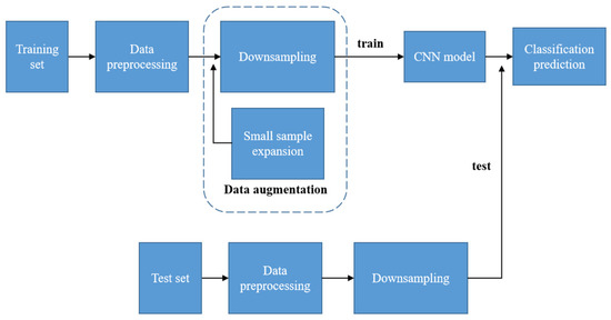 Data enhancement includes two steps: data expansion of a small number of data samples and down-sampling of all samples.