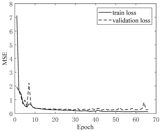 In the training process, the training set is divided into 12.5% as the verification set. During the training process, the training loss and the validation loss (MSE) are monitored, and the training accuracy and verification accuracy (Accuracy) are also monitored. The change of the loss function and the change of the accuracy are shown in Figure 7 and Figure 8.