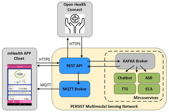 All authors equally contributed to the conceptualization, the layout of the research plan and the development and deployment of the system. All authors contributed to the writing and reviewing of the paper. Additionally, I.M. Lead the research and integration activities defined and reviewed the methodology, contributed the original draft, co-wrote, and revised the paper and the revision. V.Š., D.H., G.A., and R.P.L. contributed to the validation and co-wrote the original and revised versions of the paper. For the implementation of microservices, V.Š. oversaw the hardware and software infrastructure. U.A. oversaw the protocol. D.H. oversaw the delivery of chatbot. M.R. and I.M. oversaw delivering the symmetric model of interaction. M.R. oversaw ASR and I.M. oversaw delivering ECA service. G.A. oversaw the mHealthApp and R.P.L. oversaw the FHIR resources and OHC FHIR server. All authors have read and agreed to the published version of the manuscript.