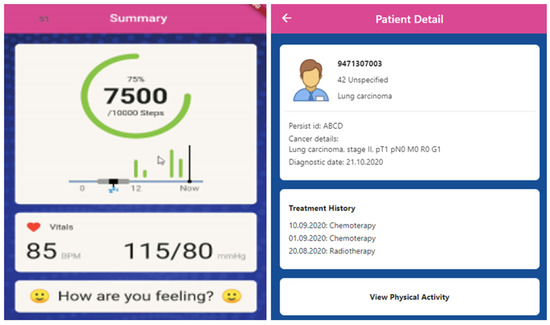 In the study, patients and clinicians have separate mHealth applications (Figure 3). The patient mHealth application is mainly used for data gathering and trends monitoring; the clinician mHealth application is mainly used for patient monitoring and specifying the patient’s care plans. Both mobile applications were developed by the company Emoda.