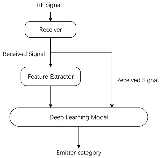 One early SEI strategy based on machine learning is to extract the features of the signals first and then classify the extracted features using various deep learning algorithms, as shown in Figure 4. However, feature extraction algorithms that rely solely on manual selection have limitations. Features automatically extracted by CNN can also achieve better results. CNN does not need to separate the two processes of feature extraction and classification training but instead automatically extracts the most effective features during training. As a deep learning architecture, one appeal of CNN is its ability to reduce the requirements of data preprocessing and avoid complex feature engineering, which can reduce the large amount of repetitive and cumbersome data preprocessing work that must be done when using traditional algorithms such as SVM.