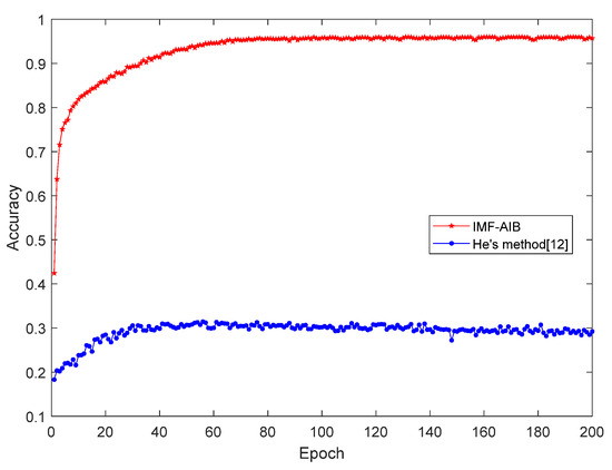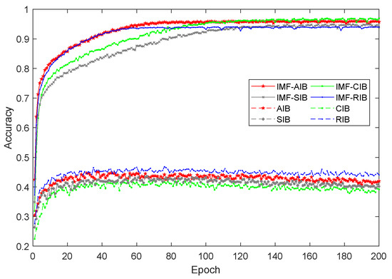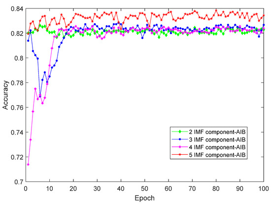 In the present study, we employed the EMD-AIB processing method as the feature of our input neural network and used the above neural network to classify and recognize the features. The network parameters follow their original settings, and the classification results are shown in Figure 8.