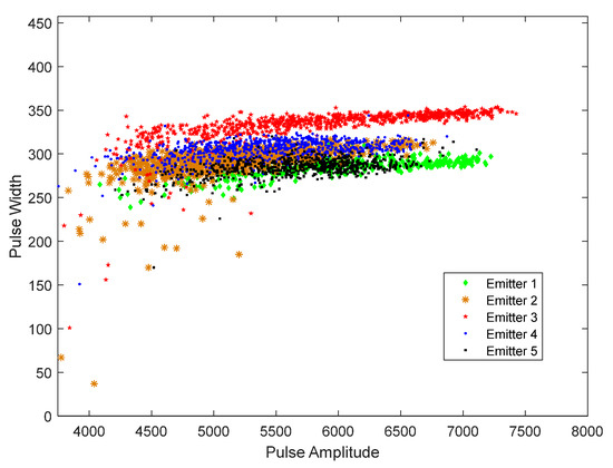 Figure 16 shows that the pulse widths sent by different emitters differ to a certain extent while the amplitude has great volatility. However, the insufficient feature dimensions limit recognition accuracy. When we need to extract more parameters from the pulse, more complex calculations and higher accuracy are required, which limits the applications for this type of method.