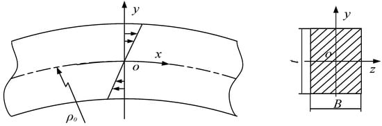 The shape of the geometric center layer of pipe was assumed to be ovality. One of the pipe’s microbeams was taken as the analysis object, as shown in Figure 3. ρ0 is the initial curvature radius of the section’s geometric center layer, the section of pipe wall is rectangular, the section height is the pipe thickness t, and B is the section width.