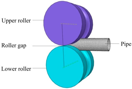 The TRCC process was simulated by ABAQUS 6.14 (Dassault Systèmes Corp. Waltham, MA, USA), the finite element model is shown in Figure 7. The pipe material was 20 steel, and its performance parameters are shown in Table 1. The dimensions of the rollers are shown in Figure 8. Different reduction ratios can be achieved by adjusting R.