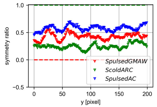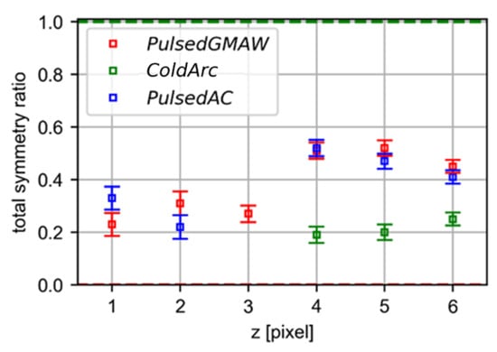 Results on symmetry for the comparison of the three different metal transfer modes.