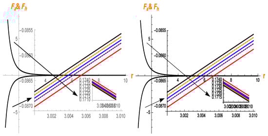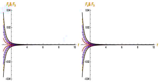 Again, using Equations (39) and (40), we get the following equations for the hydrostatic and anisotropic forces under the Lorentzian distribution for the linear model: