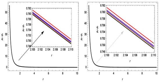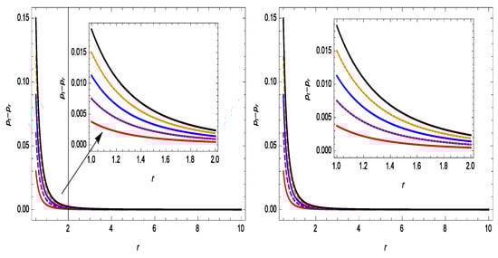 In this section, we discuss the anisotropy for the noncommutative Gaussian and Lorentzian geometries in order to examine the behavior of the anisotropic pressure. The role of anisotropy is significant in displaying the inner geometry of a relativistic wormhole configuration under the current conditions, and it is addressed as follows: