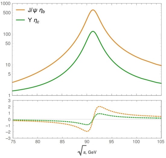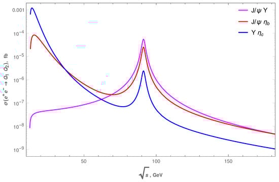 Looking to the future, we study the processes of paired quarkonium production which can not be observed at the existing experiments due to low interaction energy, namely, the production of pairs and pairs in the annihilation. These processes can be investigated in the framework of several discussed projects: ILC, FCC, and the muon collider. At ILC and FCC, studies are planned at the energies of the order of Z-boson’s mass: the energy range announced for FCC is [23] and is proposed for ILC [24]. In the project of muon collider, it is planned to implement the collisions at energies from 3 TeV to 14 TeV [25], which are beyond the energy range studied in this work.