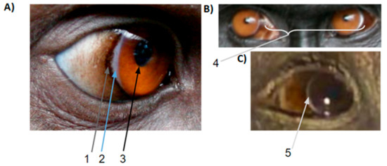 Transient changes in scleral coloration in humans have also been suggested to indicate health status, age, and even emotional states [48,49,50]. All these data suggest that the variation in scleral pigmentation should be included while investigating sociocognitive functions of external eye morphology across all primates [47].