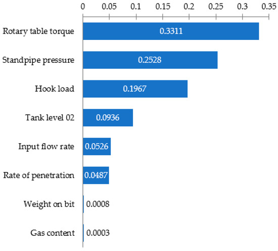 - For the GB method, the parameters that make the greatest contribution to the operation of the algorithm were established using the feature importation parameter. These are the rotary table torque, standpipe pressure, and hook load.