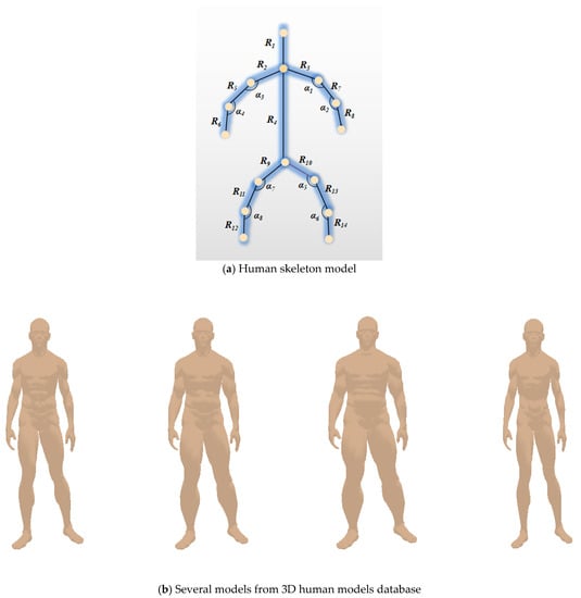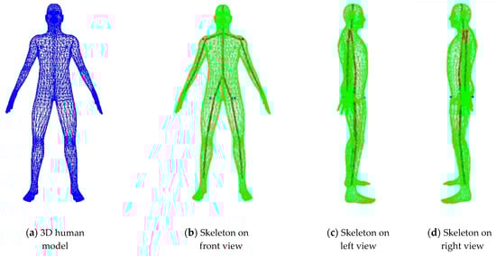 All of the 3D virtual human models are provided by the free 3D models database []. Furthermore, the initial 3D symmetric human body model is composed of point cloud data, which contains several 3D space points, which are represented by various 3D coordinates of X, Y, and Z. The variation range of coordinates is not the same, because various models are selected from different scenes. In order to ensure that the human body model has the same size, all of the models are normalized by ourselves. That is, the variation ranges of the 3D coordinates of X, Y, and Z of the point cloud are within [0, 1].