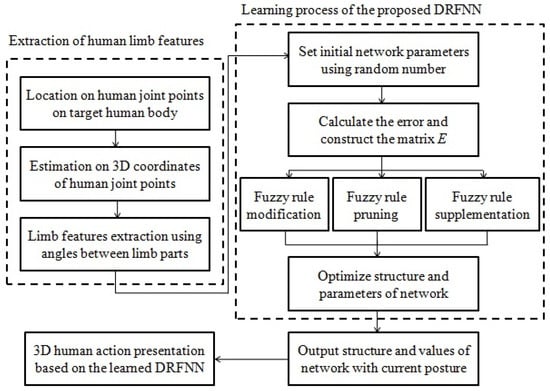 In this section, the cooperative motion model of different limb parts is estimated by the proposed algorithm based on DRFNN. According to the strategies of neurons’ supplementation, modification, and deletion, the process of the whole algorithm is described as follows: