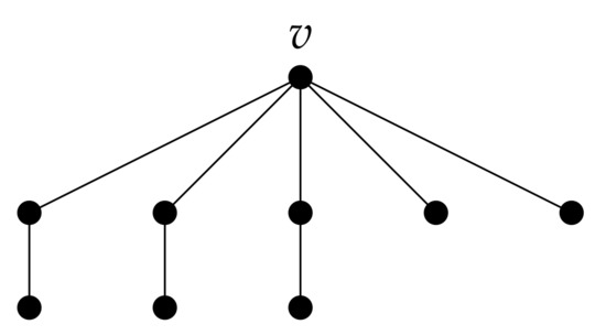 If , then assigning 5 to support vertices of T and 0 to other vertices, introduces a [4]-RDF on T, implying that , as desired. Let , then , and each -function can be extended to a -function by assigning 5 to support vertices in and 0 to the remaining vertices. Thus, by induction hypothesis, , as desired. □