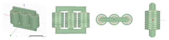 Based on the actual parameters of a transformer on an offshore platform, a three-dimensional finite element electromagnetic simulation model was established as shown in Figure 3.
