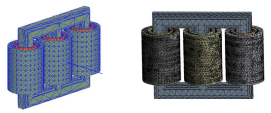 3D finite element simulation model of a transformer.