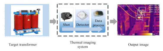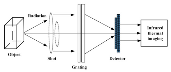 where P is the radiation power of the object; ε is the emissivity; and δ is the Stefan–Boltzmann constant. The principle of infrared thermal imager is shown in Figure 9.