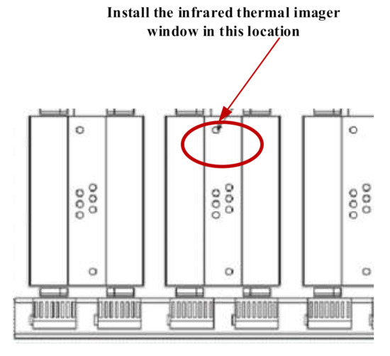 According to the analysis of the temperature field of the 35 kV dry-type transformer, the hotspot temperature of the B-phase (middle-phase) winding was slightly higher than that of the A- and C-phase windings. The hotspot temperature appeared in the upper half of the low-voltage winding and the winding temperature presented with a circumferential characteristic. The distribution was uniform; however, the low-voltage winding was located between the iron core and the high-voltage winding, which could not be directly observed by the infrared thermal imager. The heat transfer relationship between the high-voltage winding and the low-voltage winding is known. For the middle and upper parts of the high-voltage winding of the phase, we selected one side for easy installation as shown in Figure 12.