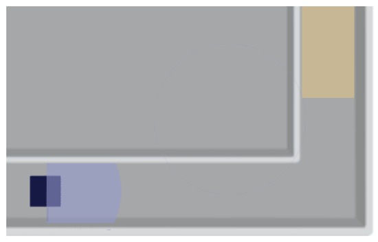 The starting point of each episode is at the bottom left corner, as Figure 2 shows, the robot’s position. When the robot has a collision, the reward is −1, and a new episode starts from the starting point. When the robot is running safely, the reward is 0.001 for each step. When the robot moves to the target area, the reward is , and the new episode starts again. To accelerate the robot’s speed and uses fewer whole steps per episode than running at a plodding speed to obtain each step’s reward. We use the in reward as a punishment. We set 1000 steps for each episode and train 1000 episodes in total.