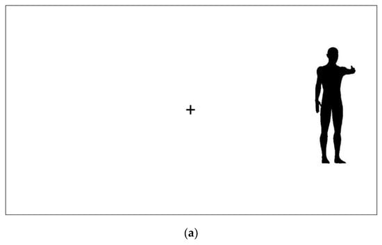 In recent studies [,,,], we found that when right- and left-handed subjects were required to indicate the orientation of ambiguous (in terms of front or back view) figures representing human silhouettes in the act of performing one-handed manual actions, both groups reported perceiving the figures more frequently as oriented consistently with a right-handed movement than with a left-handed movement. Similar findings were reported for dynamic stimuli representing ambiguous human bodies represented in the act of performing unimanual and unipedal movements [,,]. These results indicate an attentional/perceptual bias toward the right side of the human body and are also consistent with findings from research investigating the perception of sport actions, according to which the outcomes of right-limbed movements can be anticipated better than the outcomes of left-limbed movements [,,,,,,]. Noteworthy, this difference is present regardless of observers’ handedness [,], which is in contrast with the proposal that the correspondence between observed movements and stored representations could foster action recognition (see [] for a review). According to Hagemann [] and Loffing, Schorer, et al. [] (see also [,,,]), the ability to discriminate left-handed actions would be lower than that to discriminate right-handed actions (the same would hold true for foot movements), a difference likely due to a perceptual frequency effect (see also []): given that both right- and left-handers usually play against right- rather than left-handed opponents, the discrimination of right-handed actions would be easier for both groups in several interactive sports, in agreement with theories that emphasize the crucial role of visual experience in action perception (e.g., []). From an evolutionary point of view, an attentional and perceptual bias in favor of right-handed movements might be adaptive in social life because most everyday social interactions occur with right- rather than left-handed individuals (see also [] for a more detailed discussion). Specifically, such a bias would represent a perceptual preference to attend to the body region most likely including others’ right hand. Given that, compared with the left hand, the right hand is more used in both communicative and aggressive behaviors, the bias toward the right side of human bodies would increase the efficiency in monitoring such behaviors. Further findings in line with a bias toward the right limbs of human bodies are provided by studies employing biological motion represented through point-light animations []. For example, Thornton et al. [] (see also []) found that a point-light walker exhibiting equal motion clues to either side, and hence ambiguous in terms of heading direction, was interpreted more often as right-facing than as left-facing. It should be noticed that, when a right-facing individual is observed, the right limbs are in the foreground, and thus such results support the presence of an attentional and perceptual bias in favor of the right side of others.