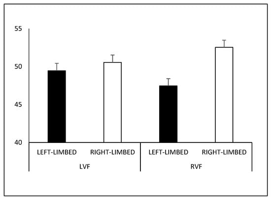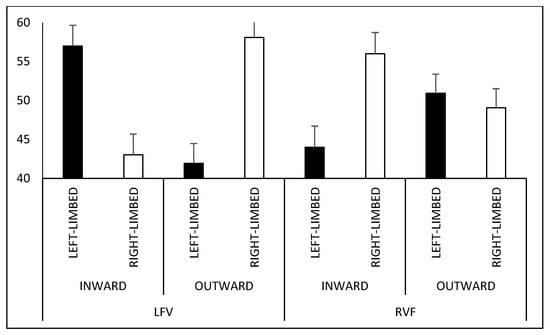 Percentage of figures interpreted as right- and left-limbed according to hemifield of presentation. Note: LVF, left visual field; RVF, right visual field.