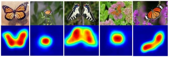 As shown in Figure 9, we used Gradient-weighted Class Activation Mapping (Grad-CAM) to visually explain the performance of MRDA-MGFSNet on butterfly classification. It can be seen that our MRDA-MGFSNet model could locate the area of the butterfly in the image very well.
